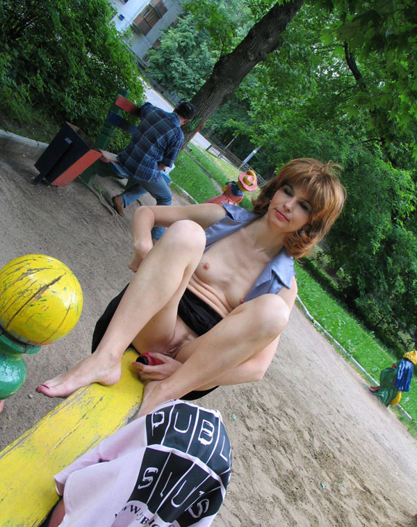 Любительница помастурбировать на улице