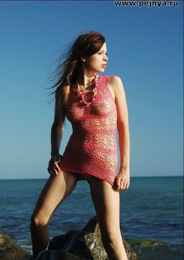 Голая девушка на фоне синего моря
