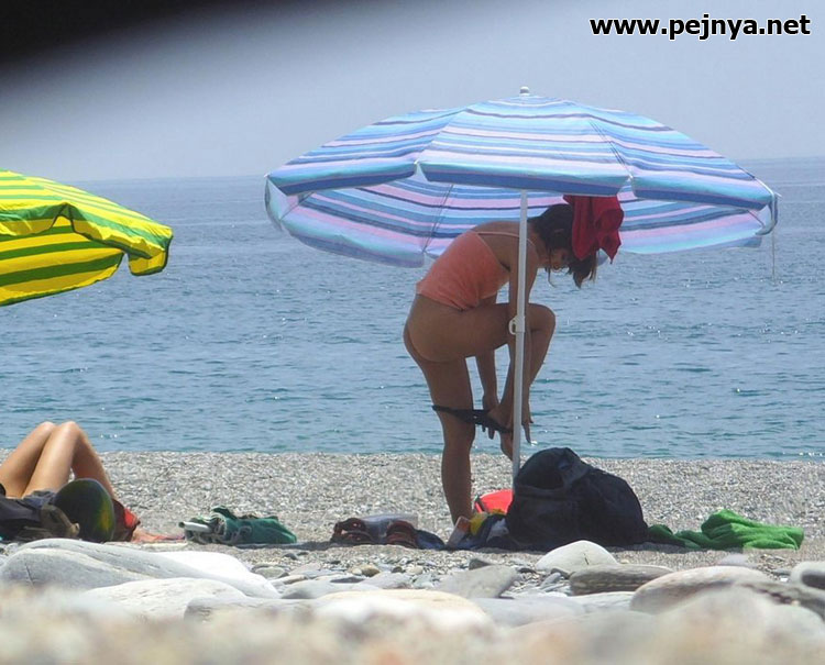 Девушки переодеваются на пляжу (4)