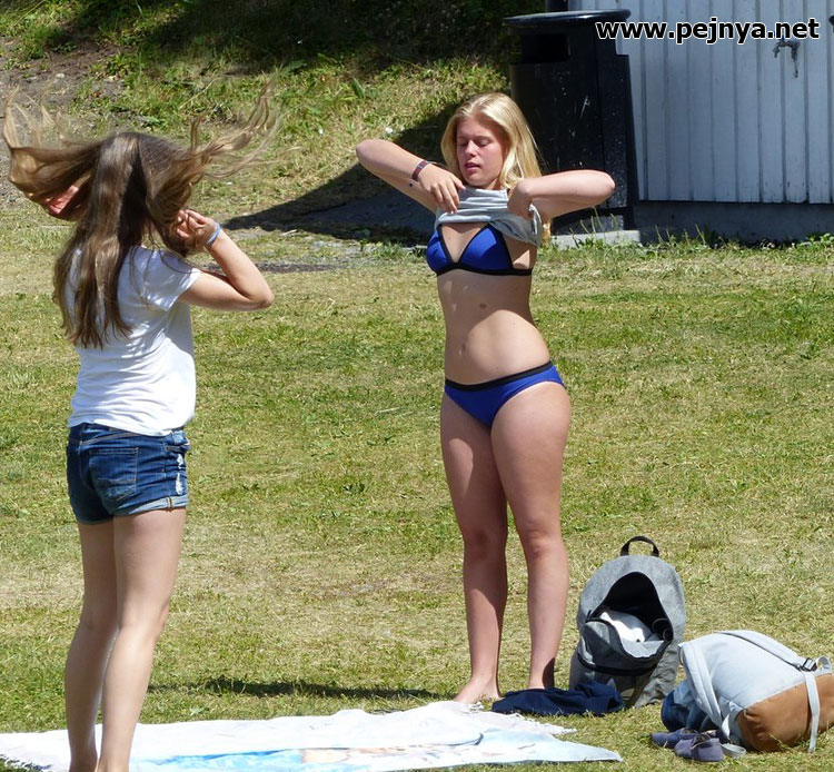 Девушки переодеваются на пляжу (13)