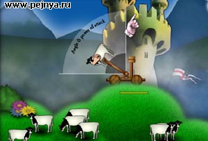 Красивая игра замочи врагов коровами из катапульты.