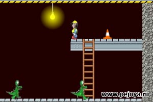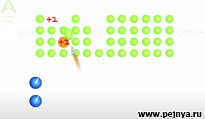 Тут нужно выбивать у лупоглазых человечков какие- то штуки так, чтоб они падали на голову других человечков.