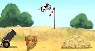 Катапультируй корову и попади ей в стог сена.