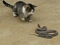Кошка напала на змею.