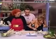 Телешоу. Так уплетала что сиська выволилась.