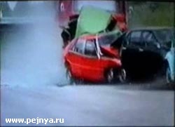 Краш тест. Автобус против нескольких легковушек.
