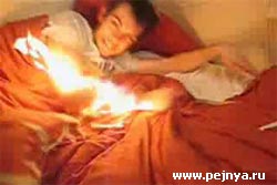 И вновь прикол над спящим чуваком. Только теперь с поджиганием руки...