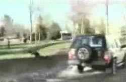Джип сбивает человека.