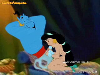 Жасмин отсасывает у джина, а тот балдеет от кайфа (Эпизод из мультфильма «Алладин»).