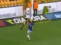 Вратарь поймал мяч и коленкой заодно по лицу нападающего прошёлся