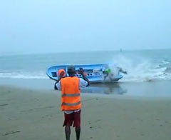 Катер выехал на пляж.