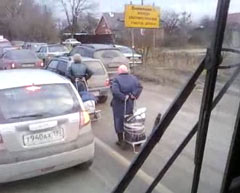 Бабушки с тележками в пробке.