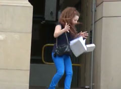 Мужик пугает людей на улице.