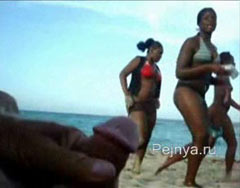 Автобусный извращенец переместился на пляж и шокирует там проходящих девок