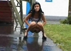 Девчёнка отливает прямо перед своим парнем на улице, а он всё это снимает