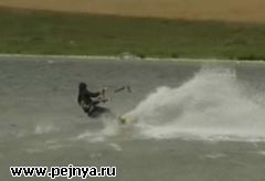 Кайт серфера нехило унесло ветром и еще и об воду приложило смачно.